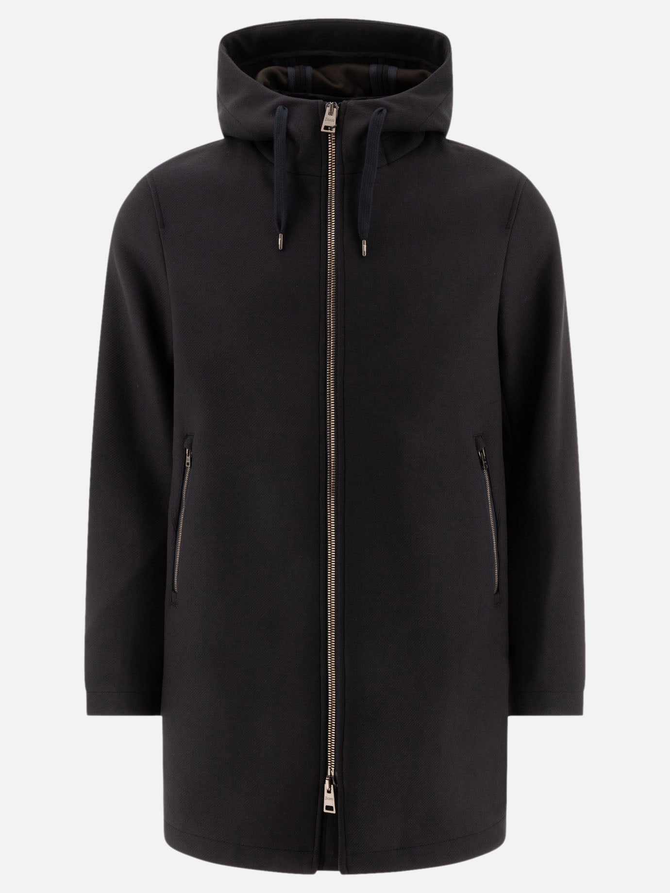 - Cappotto con cappuccio in misto lana vergine blu navy