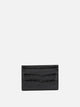 Portacarte "Exotic Line" Tom Ford realizzato in pelle con stampa coccodrillo e finitura lucida. Struttura sottile e compatta, caratterizzata da superfici rigide e bordi netti. La costruzione utilizza tagli di pelle accostati con cuciture ridotte al minimo. Il logo Tom Ford è applicato in rilievo sulla parte frontale. L'assetto interno prevede comparti paralleli pensati per carte di credito o biglietti da visita.