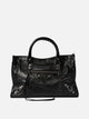 Borsa a mano "Le City" Balenciaga, costruita in pelle di agnello Arena Storico con texture visibile. La struttura morbida è definita da due manici corti intrecciati a mano. La silhouette rettangolare è completata da una tracolla regolabile e rimovibile, finiture in ottone e chiusura superiore con zip e tiralampo in pelle annodata. Tasca frontale esterna con zip, comparti interni con tasca con zip, fodera in tela di cotone.