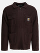 Carhartt WIP lightweight "Chore Knit" jacket with acrylic, wool and nylon blend yarn construction. The silhouette is inspired by work jackets, with straight line, four front patch pockets, one of which is closed by flap and button. Double-slider zipper with logo on zipper puller. Square fabric label applied to the front. Visible stocking at the armholes.