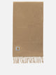 Carhartt WIP wool "Clan" scarf made from fulled pure wool fabric. One-size rectangular construction, edges finished with long bangs on both short sides. Regular, soft surface, tightly woven construction that enhances durability. Square fabric label applied on one end, inserted directly into the scarf structure. Minimalist design oriented on functional simplicity.