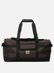Carhartt WIP "Duffle Bag" made of waterproof recycled polyester canvas. It has a soft construction with no interior lining and exposed piping on all seams. A main compartment with two-way zipper closure provides direct access to the 32-liter interior space. Adjustable webbing handles and shoulder strap ensure practicality in travel and sports contexts. Front flap patch pocket and interior zippered pocket complete the construction.