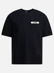 Gros Grain Jacquemus logo T-shirt made from organic cotton. The construction features a loose fit, with short sleeves and a ribbed crew neck finish. The Jacquemus gros-grain logo is embroidered on the chest, characterizing the garment with a textural contrast element. The seams are linear and the silhouette maintains a regular fit, coordinating practicality and comfort in everyday wear.