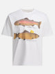 Kapital "Two Trout Peckish Rainbow" T-shirt with cotton construction, short sleeve and straight line. The design features a crew neck and a front graphic print. The cut follows a classic construction, with no contrast stitching or additional sections. The overall appearance maintains regular proportions, with standard neckline, bottom and sleeve trim.