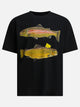 Kapital "Two Trout Peckish Rainbow" T-shirt with cotton construction, short sleeve and straight line. The design features a crew neck and a front graphic print. The cut follows a classic construction, with no contrast stitching or additional sections. The overall appearance maintains regular proportions, with standard neckline, bottom and sleeve trim.