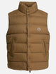 Moncler "Tibb" Vest. Padded vest made of nylon laqué, with sleeveless construction and nylon laqué lining. Eighties-inspired silhouette features fitted shoulders and chest with boxy waist. The front closure is zippered, while the collar is finished with a snap button. The construction features down and down inner padding, with zippered side pockets.
