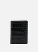 Tom Ford "Exotic Line" folding card case in crocodile-print leather, compact construction with rectangular silhouette. Rigid structure and linear profile, features six dedicated slots for organizing cards. Smooth finish and heat-sealed edges. The surface highlights a regular grain, typical of the embossed treatment, defining texture details. Interior inserts are leather, with tone-on-tone stitching to ensure stability and durability.