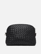 Dragon Diffusion small "Fellini" clutch bag, made of woven Italian cowhide leather. Compact structure, essential line, semi-rigid construction. Top closure with metal zipper. Interior finished with cotton drill lining, fitted with flat patch pockets. Minimalist silhouette is complemented by a detachable leather shoulder strap designed for versatile, hands-free use.