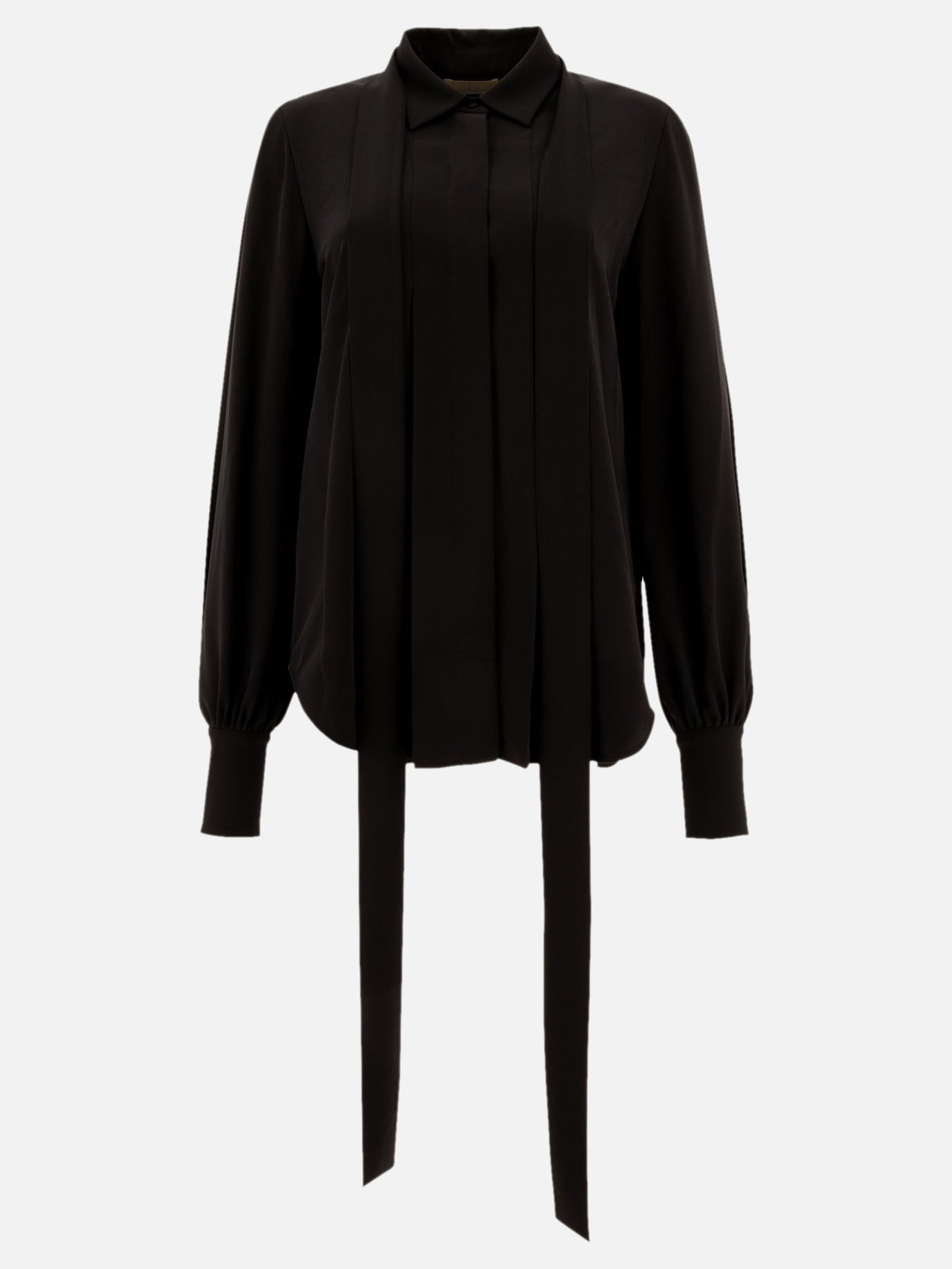 Elie Saab's lightweight crepe shirt is an elegant and versatile piece, perfect for the woman who wants a touch of sophistication in her wardrobe. Made of solid-colored fabric, this shirt features a sophisticated design that enhances its fit and style. Long sleeves and the ability to tie a bow at the front make this garment one of a kind.