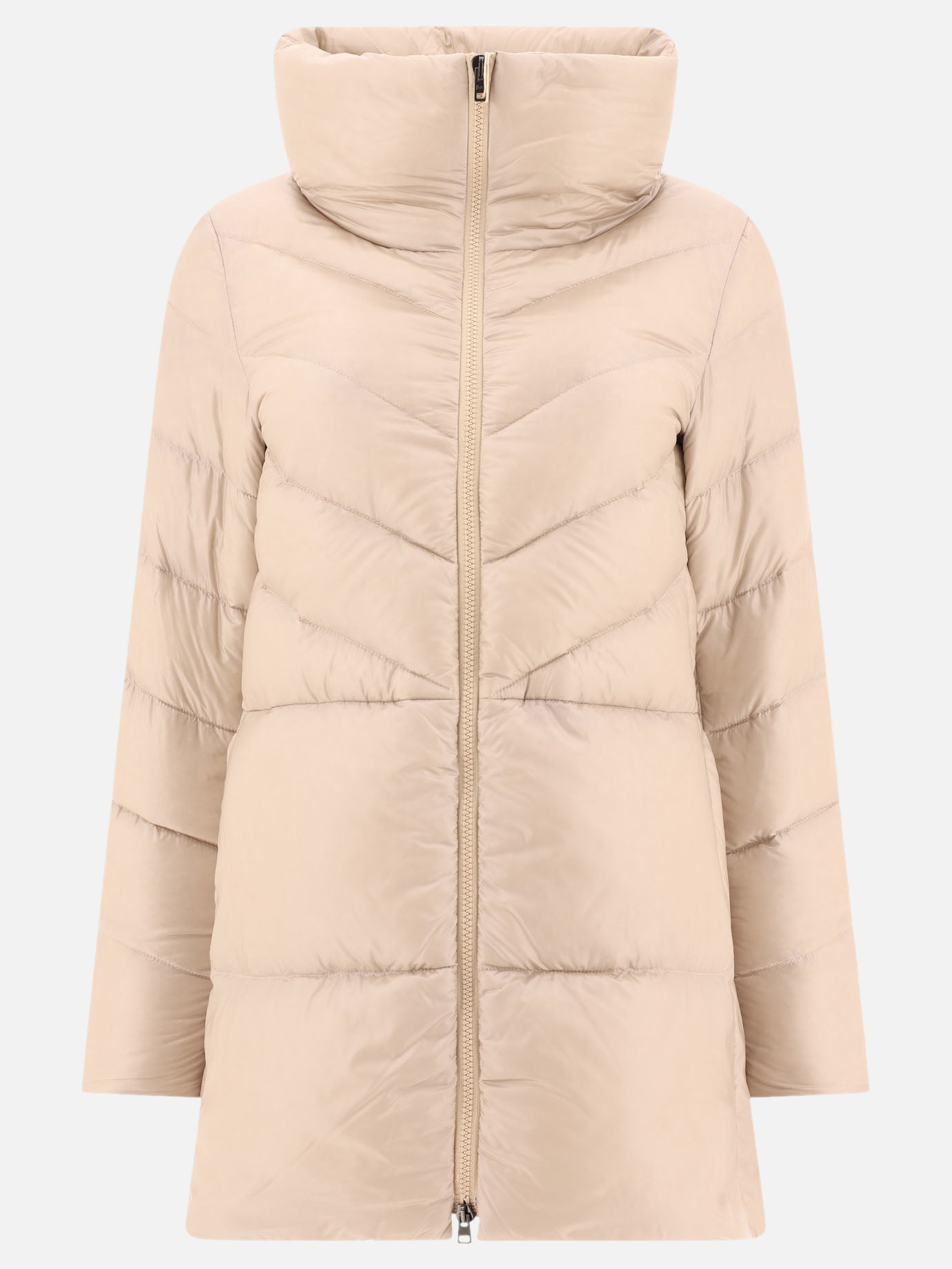 Herno's "Chevron" down jacket represents the quintessence of practicality and style for the modern woman. With an elegant and minimalist design, this garment is perfect for facing the coldest days with comfort and sophistication. Made in a solid color, it stands out for its clean lines and regular fit, an element that makes it versatile for any occasion.