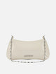 Jacquemus small "Le Petit Bisou Chaine" shoulder bag made of brushed and polished calfskin. Rigid and compact structure with contoured profile and geometric silhouette. A metal chain shoulder strap completes the construction of the product, while the top zipper closure and silver metal appliqué logo define the functional elements. Essential details and exposed metal trim.