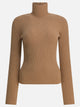 Max Mara wool and cashmere turtleneck sweater made from stretch yarn of wool, cashmere, polyamide and elastane. The ribbed construction hugs the silhouette, enhancing the fitted silhouette. The construction features a defined high collar and long sleeves, with a functional half zipper at the back of the collar, fitted with a custom Max Mara enamel slider. The ribbed knit ensures strength and shape retention over time.