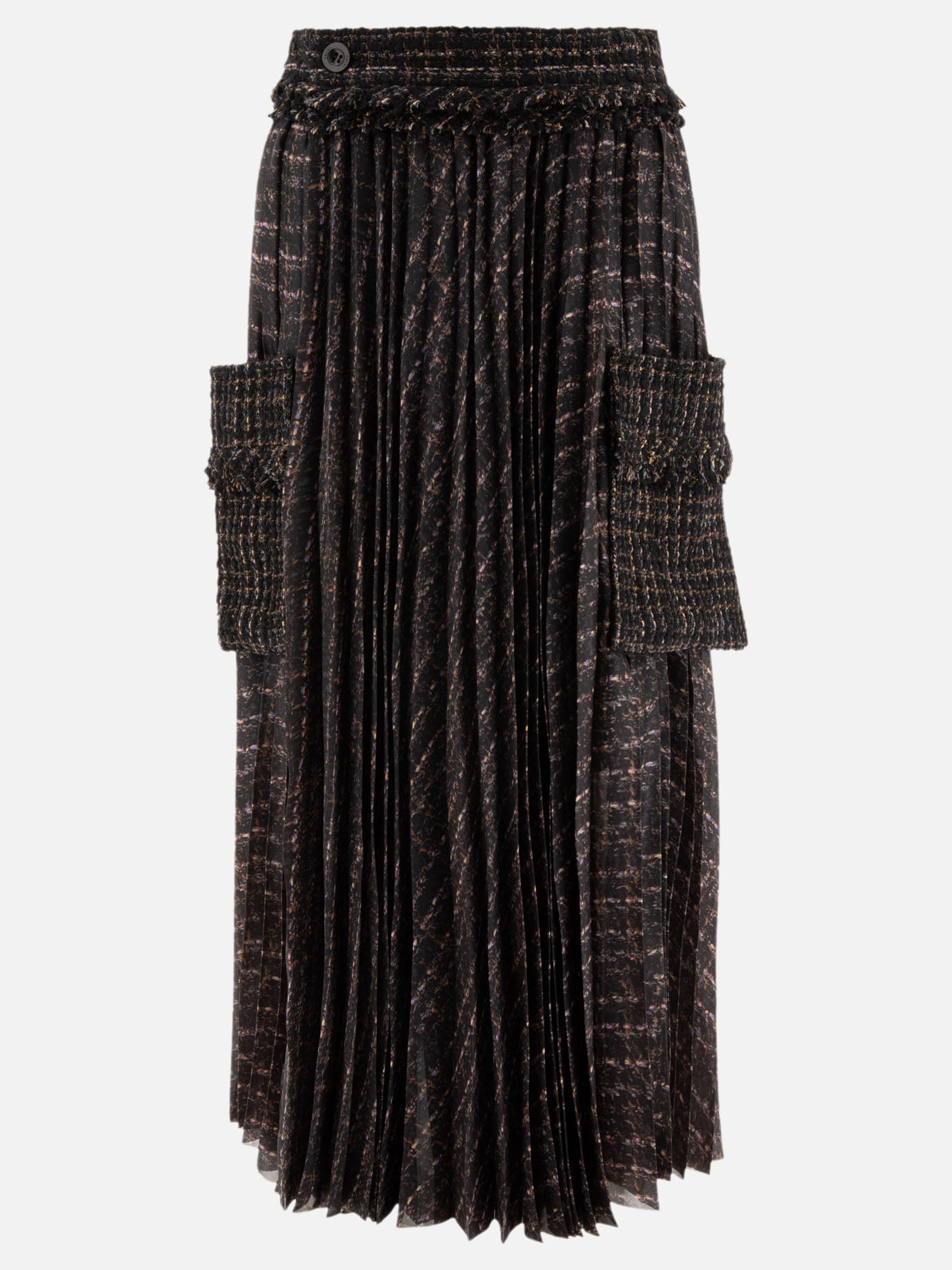 Sacai's pleated skirt with cargo pockets is an explosion of style and functionality, perfect for the woman who doesn't give up elegance while remaining practical. Its sophisticated structure fits perfectly in a variety of settings, from casual to formal, thanks to its unique and innovative design.